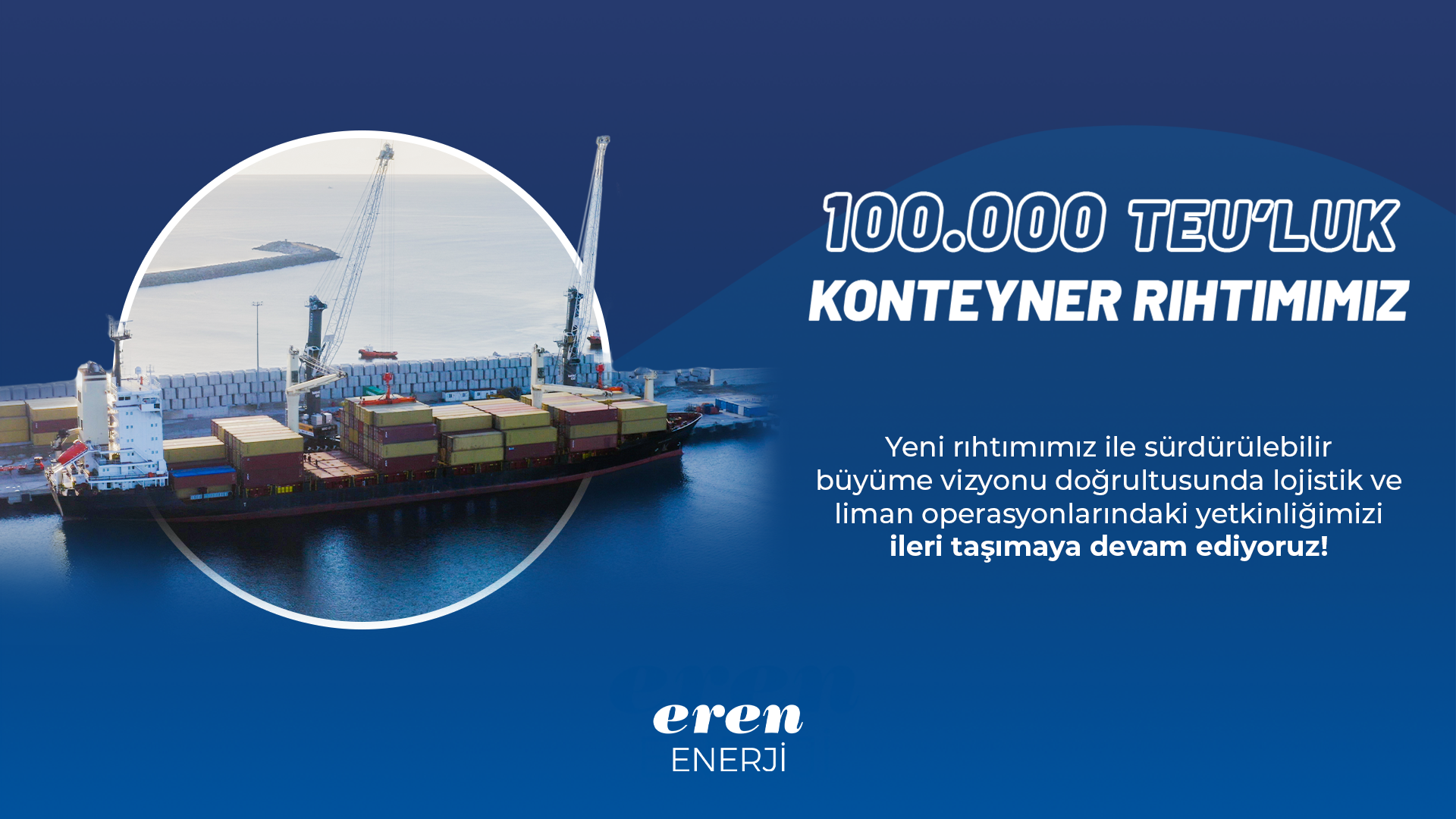 15 milyon ton dökme yük ve 100.000 TEU konteyner elleçleme kapasitesiyle Eren Limanı, lojistik yetkinliklerini ileriye taşımaya devam ediyor.
